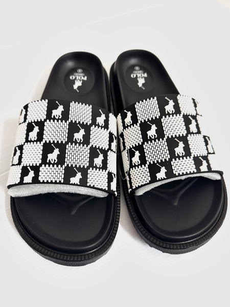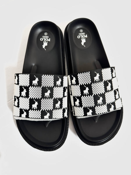 Original men's Polo pool sandals - Black monogram pool sandals. (#64195)